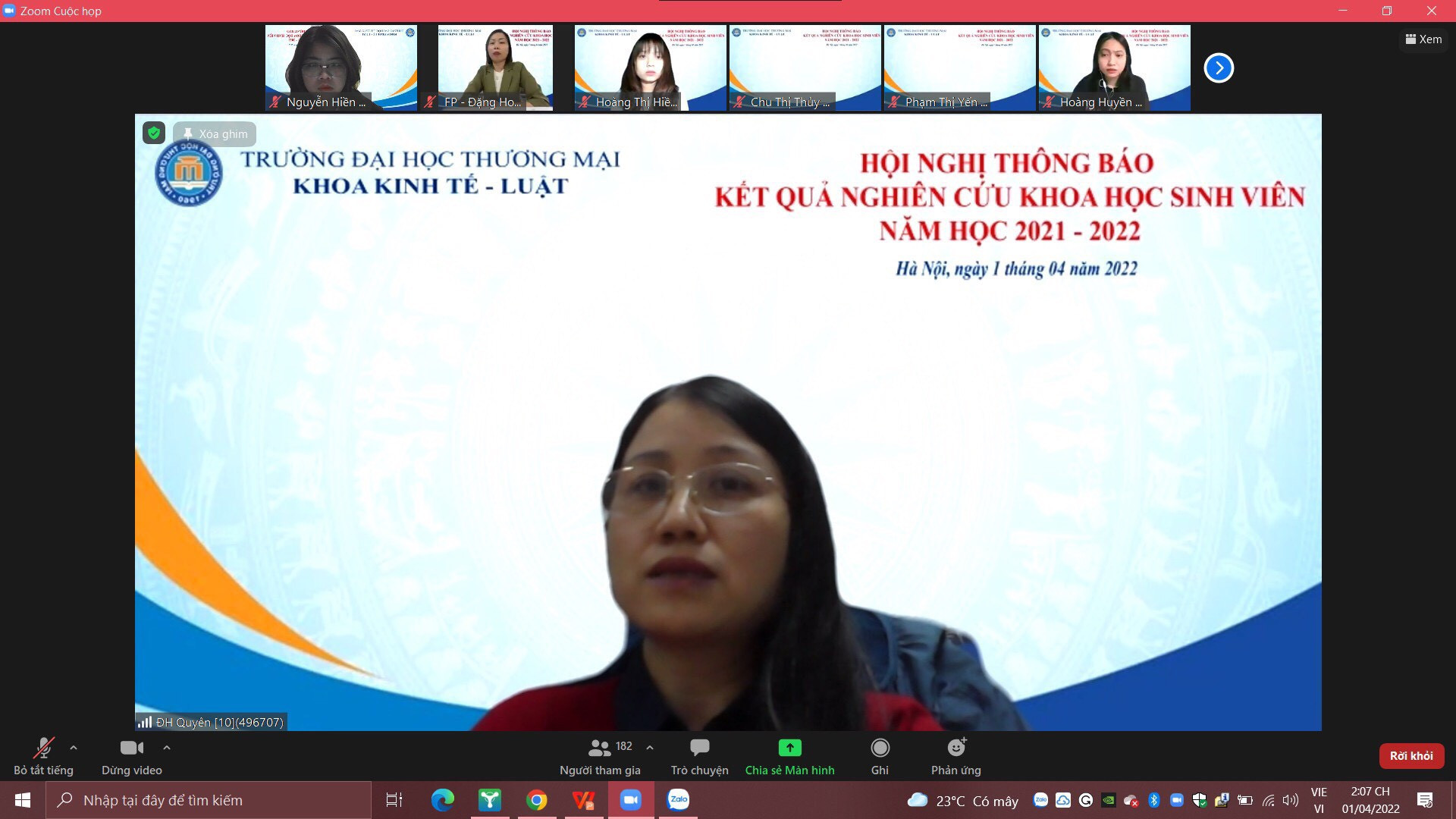 Hội nghị báo cáo kết quả NCKHSV nắm học 2021-2022 khoa Kinh tế - Luật