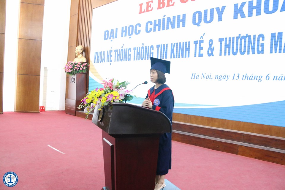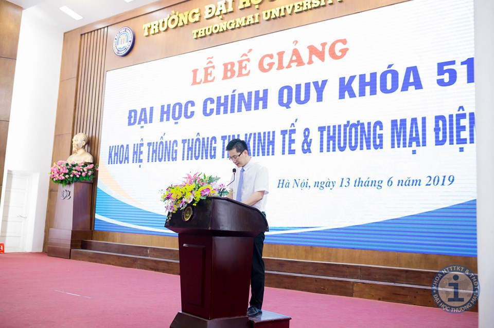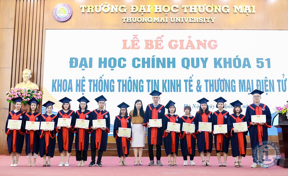 ⏩? Trích Bài phát biểu của Thầy Trưởng Khoa - TS. Nguyễn Trần Hưng: "Các Tân cử nhân thân mến! Hôm nay, các em sẽ vinh dự được nhận tấm bằng Cử nhân TMĐT và Cử nhân HTTT Quản lý. Các em hoàn toàn có quyền tự hào chính đáng về thành quả mà các em đã đạt được trong suốt 4 năm phấn đấu học tập và rèn luyện tại Nhà Trường. ??Tuy nhiên, các tân cử nhân K51 cần lưu ý: những kiến thức mà các em đã tích luỹ được trong suốt 4 năm học tập tại Khoa HTTT Kinh tế và TMĐT, Đại học Thương Mại mới chỉ là những kiến thức nền tảng, kiến thức cơ bản về ngành và chuyên ngành đào tạo. Đó mới chỉ là hành trang vào đời của các tân Cử nhân. Nhiệm vụ tiếp theo của các em là tiếp tục nỗ lực học tập, không ngừng trau dồi kiến thức kinh nghiệm, thích ứng tốt trong công việc và cuộc sống; sống trung thực và năng động để là một công dân tốt, có ích và có trách nhiệm với bản thân, gia đình và xã hội. ??Bên cạnh đó, trong 4 năm học tập và rèn luyện ở Khoa HTTT Kinh tế và TMĐT, ngoài sự nỗ lực cố gắng vượt khó của bản thân các em, là sự chăm lo của gia đình và người thân, sự quan tâm, giúp đỡ của các Thầy Cô giáo, của Khoa và Nhà trường. Tôi mong muốn các tân Cử nhân Khóa 51, trên cương vị công tác được giao, hãy nỗ lực làm việc, phấn đấu, trưởng thành, giữ mối liên hệ thường xuyên với các thầy cô, với Khoa và Nhà trường; hãy quan tâm giúp đỡ và dìu dắt các thế hệ sinh viên đi sau cùng trưởng thành như chính các em cũng đã từng nhận được sự giúp đỡ của các thế hệ sinh viên đi trước. Sự gắn kết của mạng lưới cựu sinh viên với Khoa chúng ta luôn là một truyền thống quý báu được các thế hệ sinh viên của Khoa gìn giữ và phát triển. ??Quan trọng hơn, để thành công và không bị tụt hậu, việc tiếp tục nỗ lực học tập, nâng cao trình độ chuyên môn nghiệp vụ ở các bậc học cao hơn là điều cần thiết. Các thầy cô trong Khoa nói riêng và ĐH Thương mại nói chung sẽ rất vui và sẵn sàng tạo điều kiện, giúp đỡ các em tiếp tục học tập ở các bậc cao hơn như Thạc sĩ, Tiến sĩ tại Đại học Thương mại. ??Tôi tin tưởng rằng với khối lượng kiến thức được trang bị trong một môi trường học tập đầy sáng tạo như ở Khoa HTTT Kinh tế và TMĐT, cùng với sức trẻ và tính năng động vốn có của sinh viên, các em sinh viên Khóa 51 của Khoa sẽ là những nhân lực tiêu biểu đóng góp những giá trị không thể phủ định vào nguồn nhân lực của đất nước".....