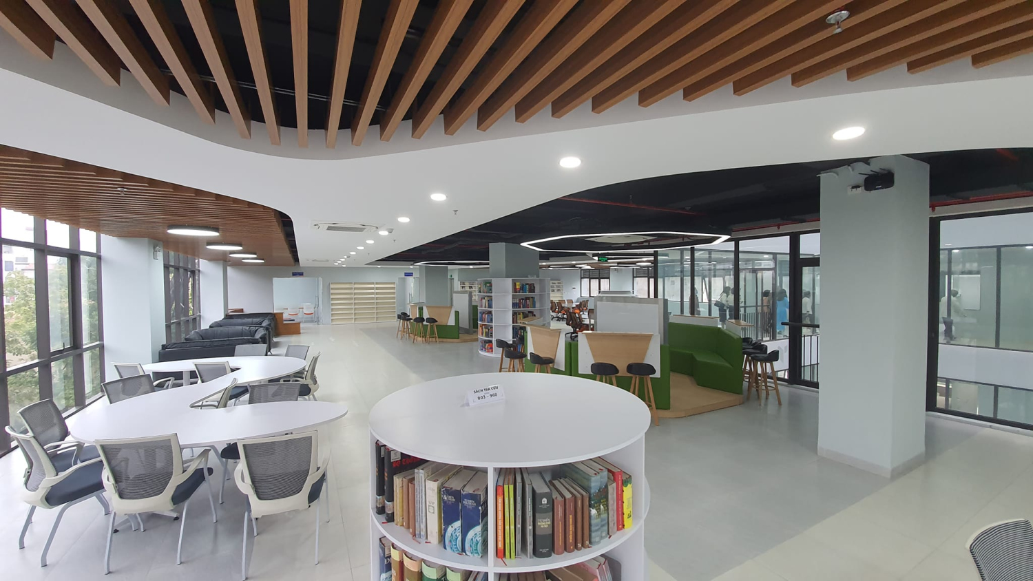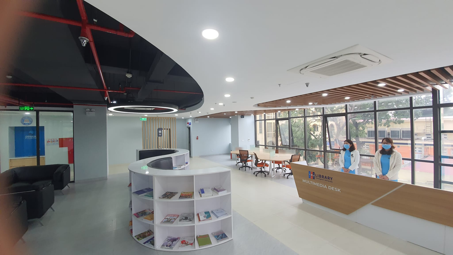? Tầng 2: Connection space - Không gian kết nối (quầy tư vấn, tiếp nhận thông tin; khu vực giới thiệu và phát hành giáo trình; khu đọc báo - tạp chí giải trí, không gian văn hóa, giao lưu âm nhạc, trưng bày, triển lãm, các ghế đọc tự do, thư giãn).