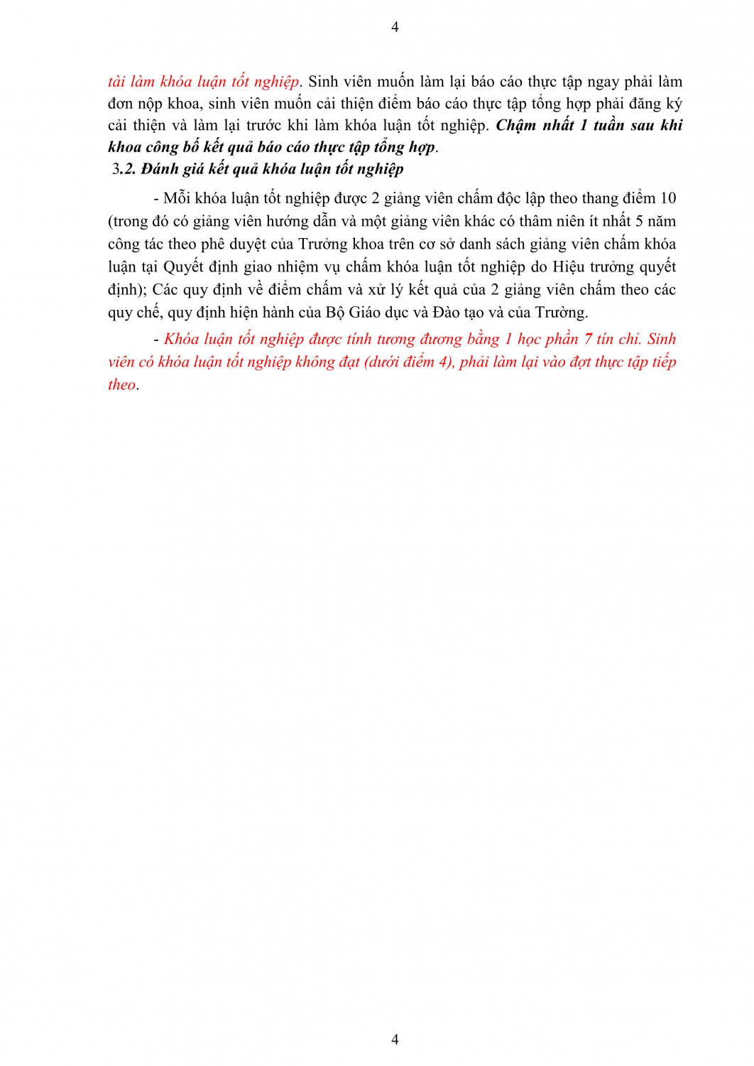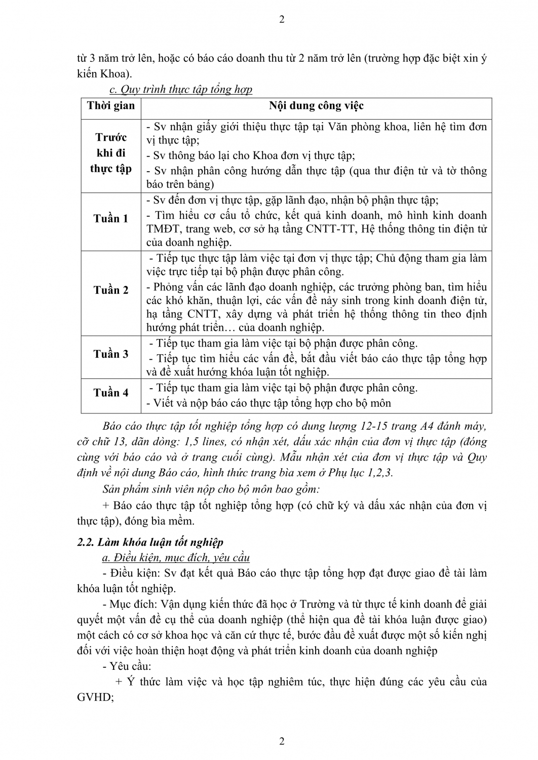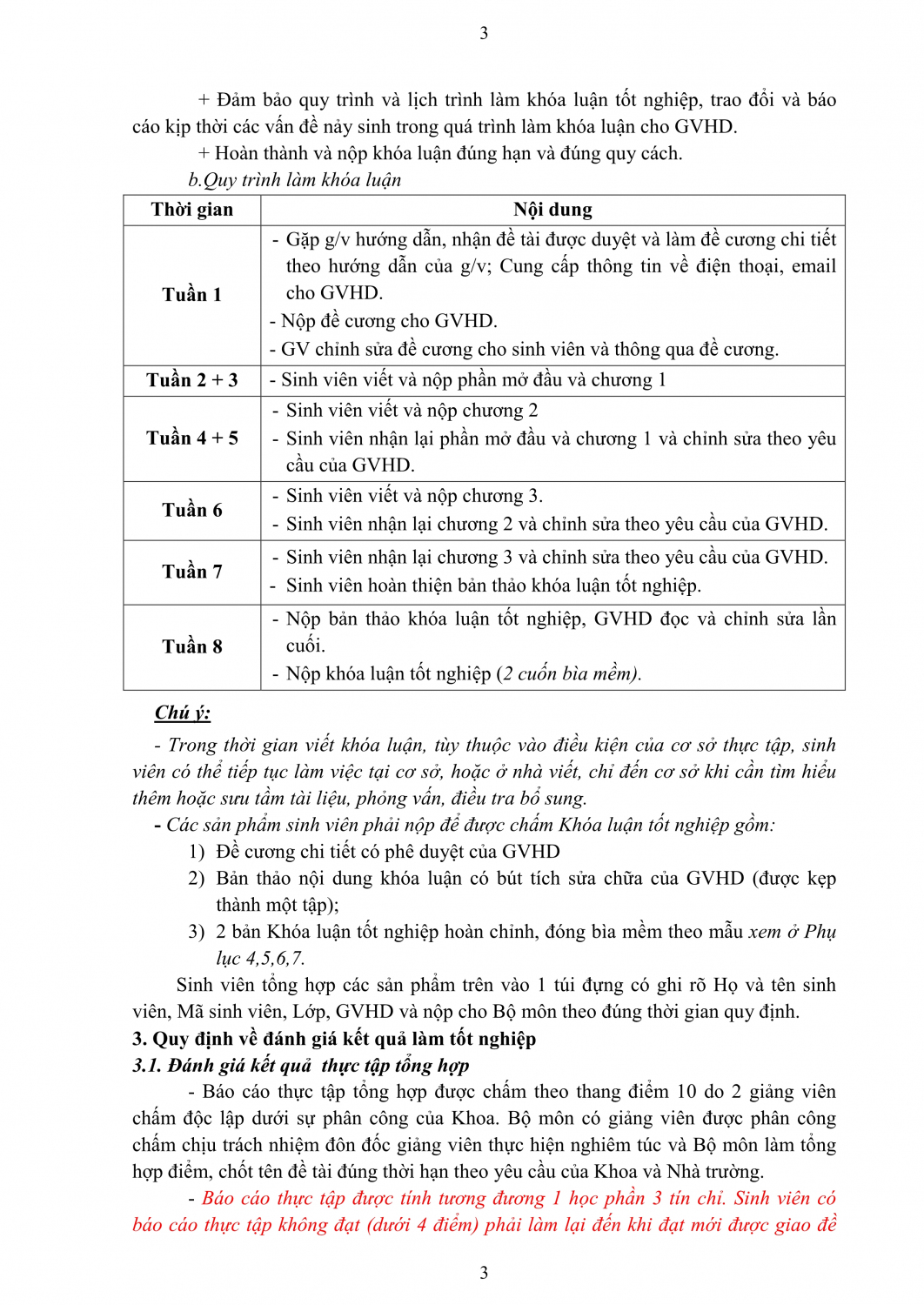 Quy định thực tập và làm tốt nghiệp