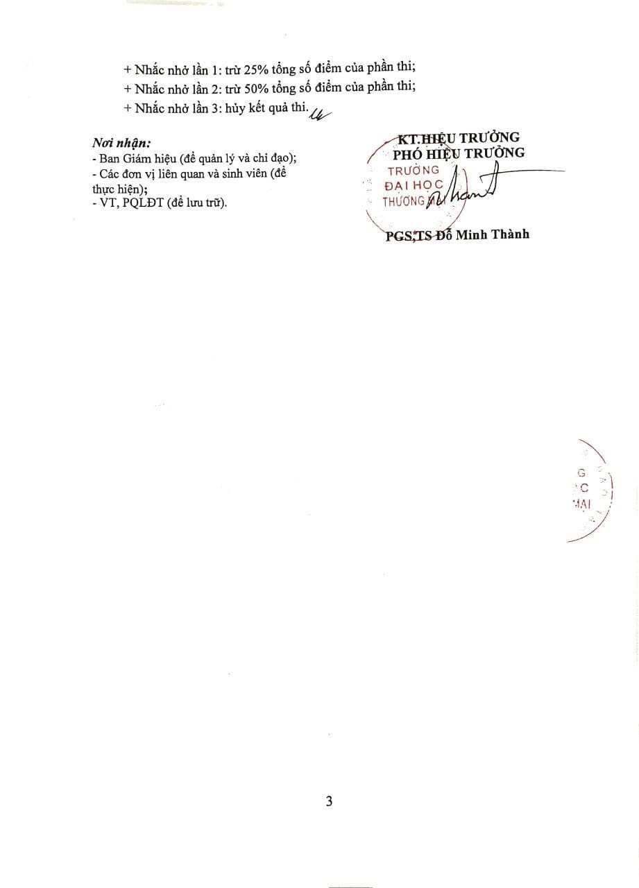 Lịch thi, danh sách thi chính thức sẽ được thông báo trên tranghttp://dangky.tmu.edu.vn trước ngày 24/12/2021. Hình thức thi: Trực tuyến