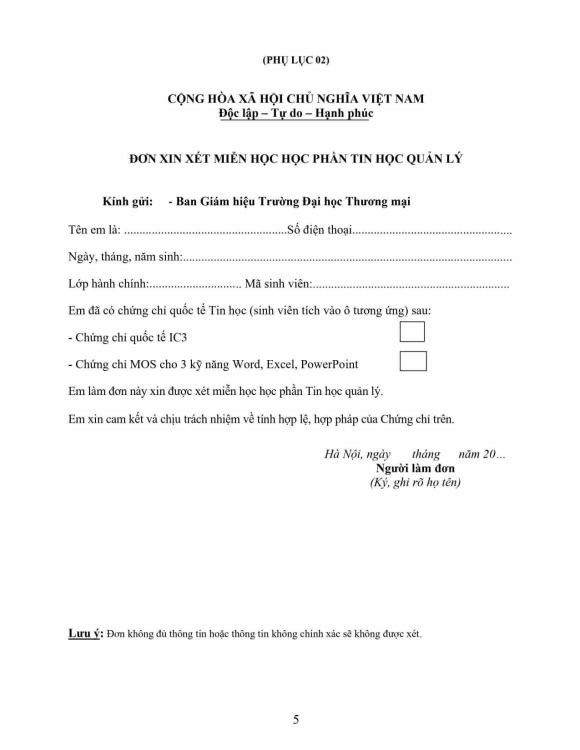 THÔNG BÁO VỀ VIỆC XÉT MIỄN HỌC CÁC HỌC PHẦN TIẾNG ANH VÀ TIN HỌC QUẢN LÝ