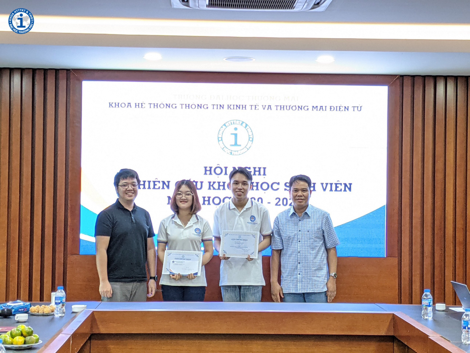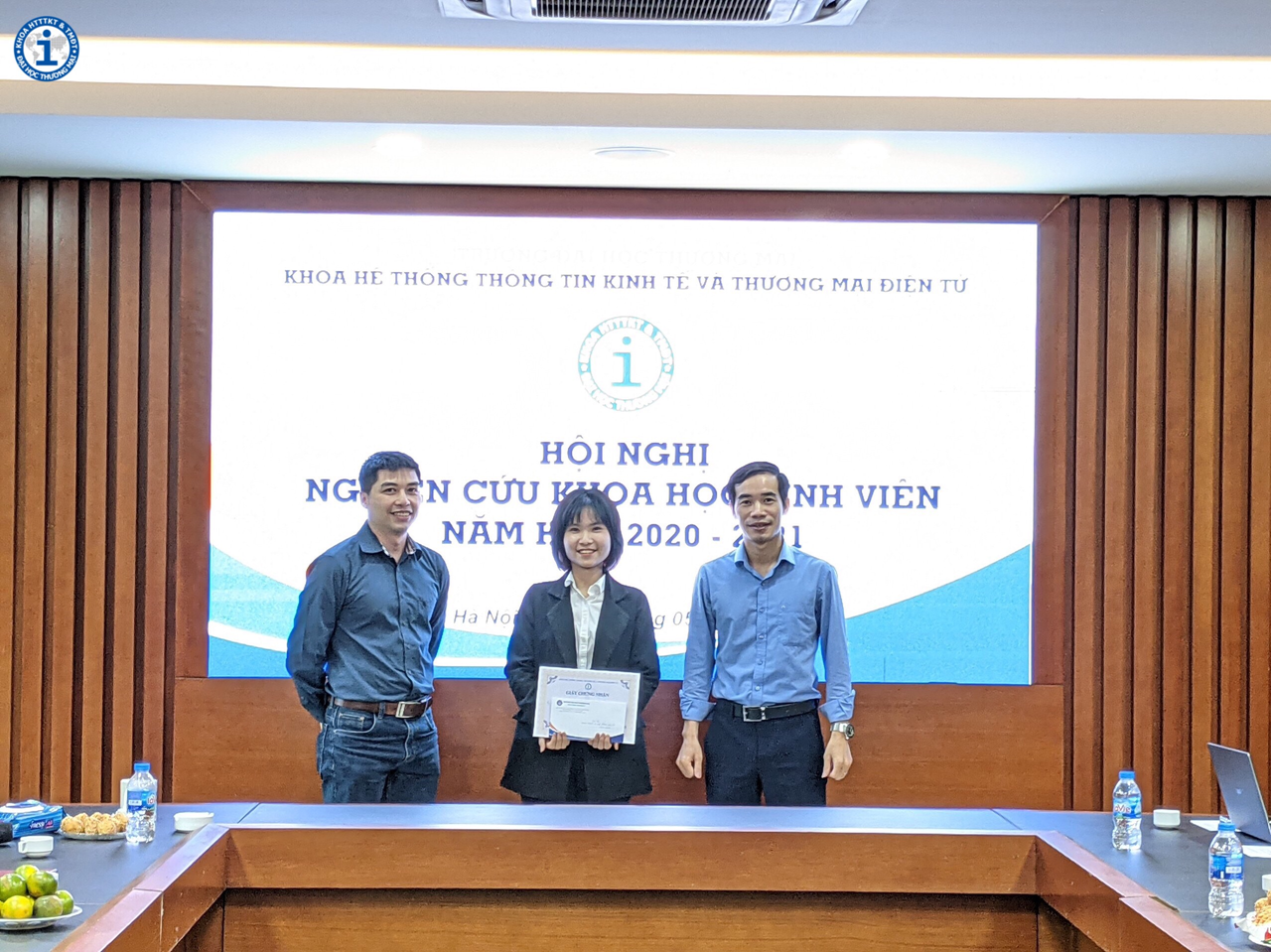 Do tình hình dịch Covid-19 diễn biến phức tạp, để đảm bảo an toàn, Hội nghị NCKHSV năm học 2020-2021 của Khoa HTTTKT & TMĐT được tổ chức nội bộ, với quy mô nhỏ, giới hạn đối tượng SV tham dự. Tuy nhiên Hội nghị đã diễn ra thành công tốt đẹp. Các công trình nghiên cứu của sinh viên đã tìm hiểu và giải quyết những vấn đề cấp bách của kinh tế xã hội. Kết quả nghiên cứu đã khẳng định phần nào những nỗ lực nghiêm túc của các nhóm nghiên cứu, hứa hẹn những mùa nghiên cứu khoa học thành công hơn nữa của Khoa trong các năm học tiếp theo.